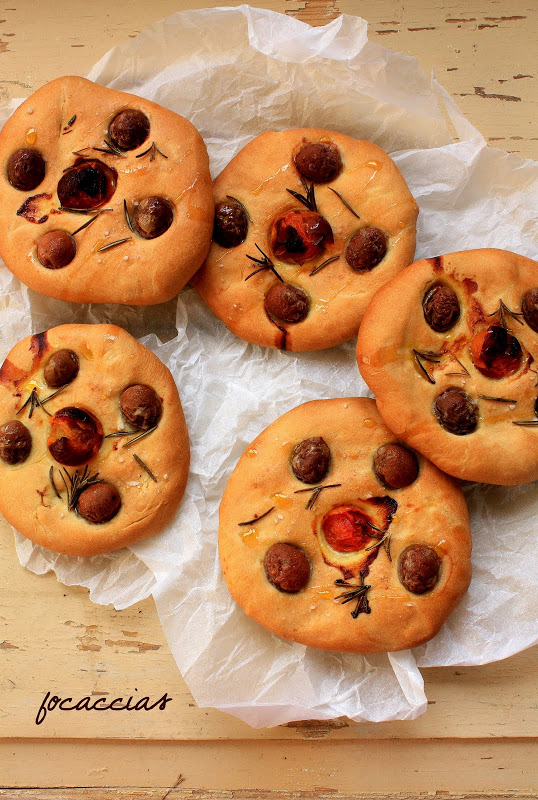 *Sirva as focaccias mornas com uns salpicos de azeite.