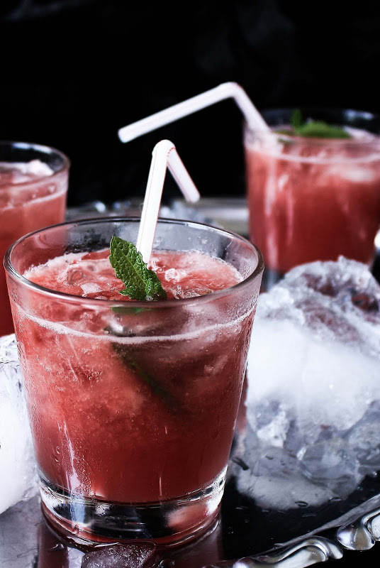 *Mix the watermelon pulp, gin, sugar and pepper mint leaves.