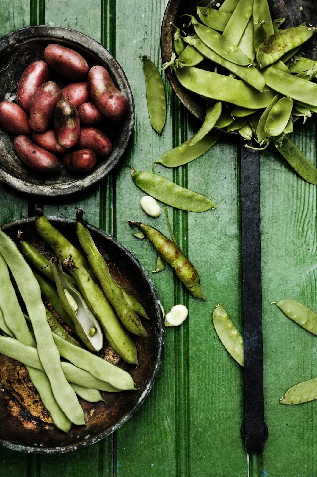 It started with a basket filled with Spring novelties or “novidades” as we portuguese call all the new veggies from each season: Firm green beans, tender fava beans, small new potatoes with the smell of soil and fresh snow peas. Mentally I was tracing the fate of each vegetable; fava beans and bacon for a moist “malandro”  rice, green beans for a delicious soup and snow peas for… and all of a suddon, nothing. All I wanted was a bit of Autumn warmth in a comforting Spring meal and all I could find in the recently bought cookbooks that I reach for when in need of inspiration, was fresh salads, which by the way are always very good but do not combine well in the words warmth and comfort. What I was craving for was something I didn´t quite knew what it was. And so I called for Maria de Lourdes Modesto, that always rescues me when it comes to real, portuguese food.