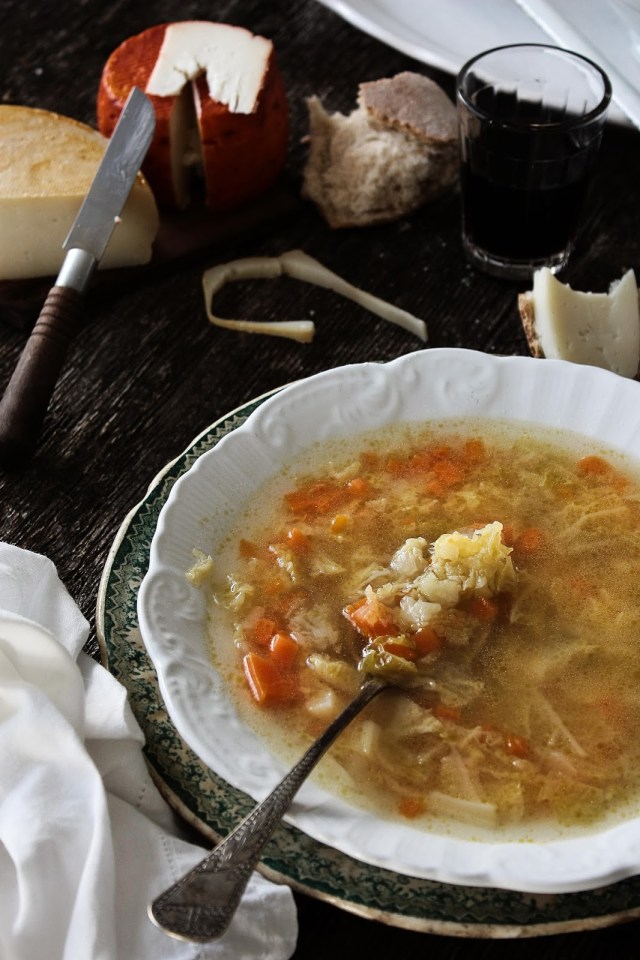 We weaved new memories between sips of hot chocolate and slices of bolo rei (king cake). We raised flutes of bubbly champagne in the air and invoked new dreams and desires and in a rare moment we witnessed an unforgetable sunset crowning one of the last days of 2013. Then the old year came to an end and now I feel that I´m back to the beginning. Starting a new year is like returning to the beginning, to the simplicity of things. I don´t want novelties and even less what is complicated. I just want what is familiar, flavors that I first tasted in my childwood and that stayed with me until today. As simple as this reinvigorating soup with the unique, almost smoky, taste of the savoy cabbage and the soft sweetness of the carrots.
