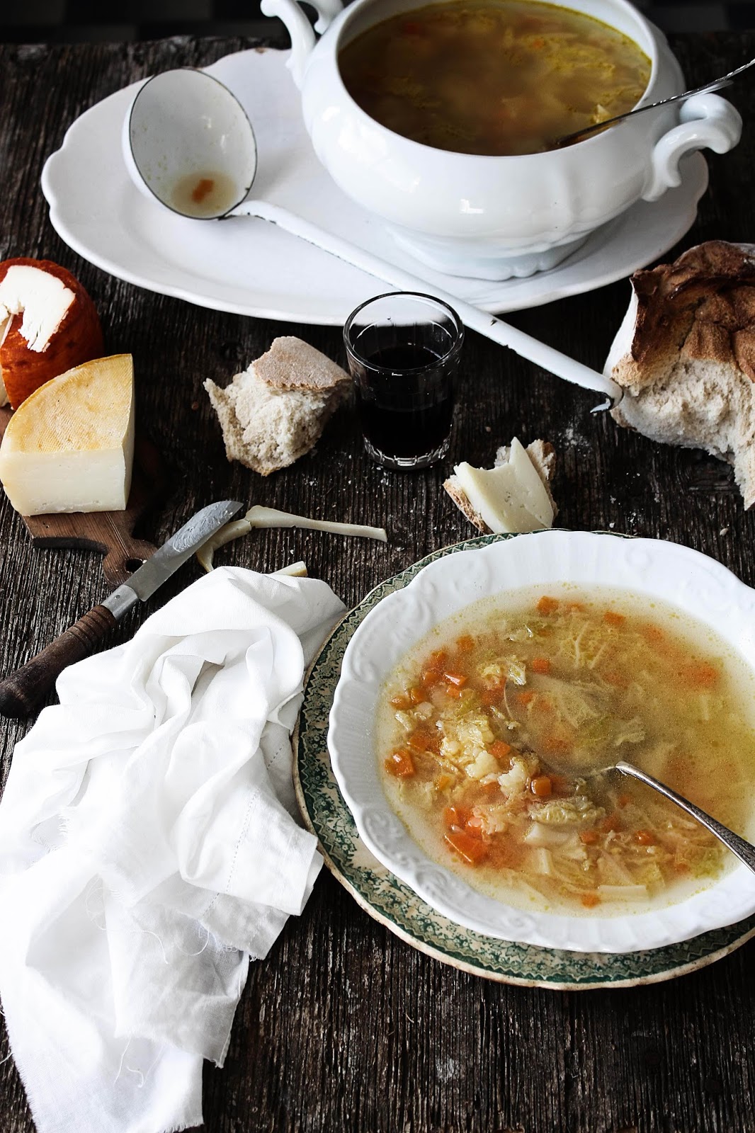 We weaved new memories between sips of hot chocolate and slices of bolo rei (king cake). We raised flutes of bubbly champagne in the air and invoked new dreams and desires and in a rare moment we witnessed an unforgetable sunset crowning one of the last days of 2013. Then the old year came to an end and now I feel that I´m back to the beginning. Starting a new year is like returning to the beginning, to the simplicity of things. I don´t want novelties and even less what is complicated. I just want what is familiar, flavors that I first tasted in my childwood and that stayed with me until today. As simple as this reinvigorating soup with the unique, almost smoky, taste of the savoy cabbage and the soft sweetness of the carrots.