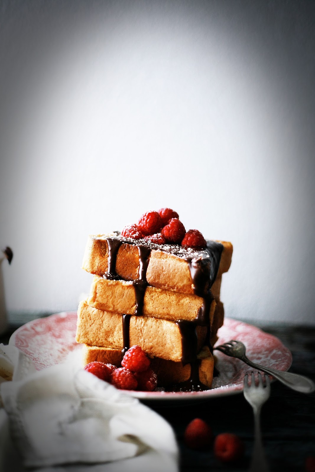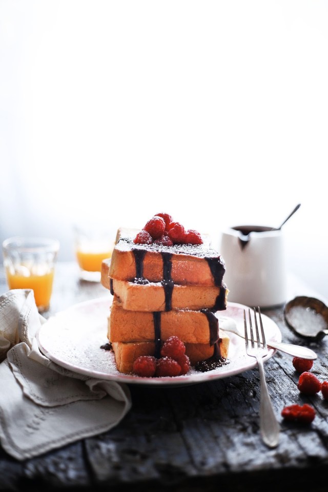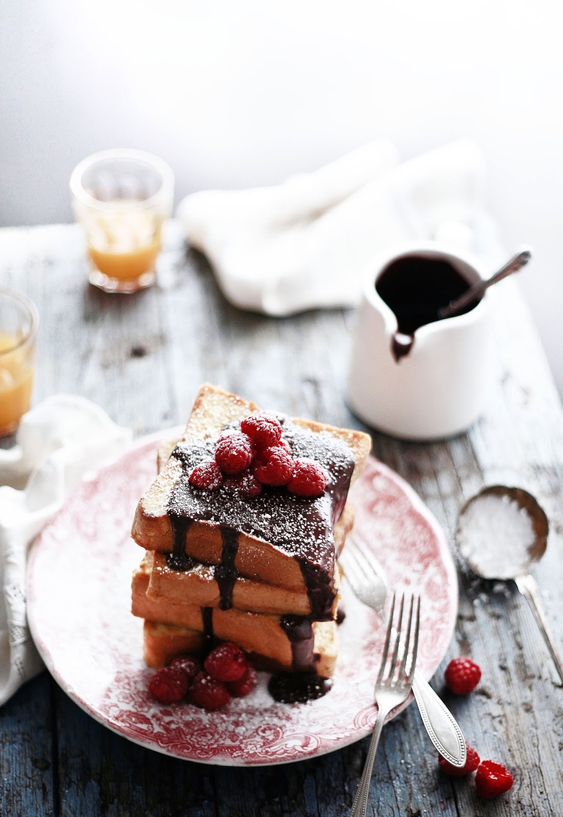 Daqui a alguns dias é S. Valentim mas o amor não tem data marcada. Acontece sempre que sim e em todas as suas nuances que são mais que muitas. Até naqueles momentos que a olho nu podem parecer banais, como um pequeno almoço a dois com rabanadas fofas de licor de framboesas e chocolate. A doçura do amor em cada dentada.