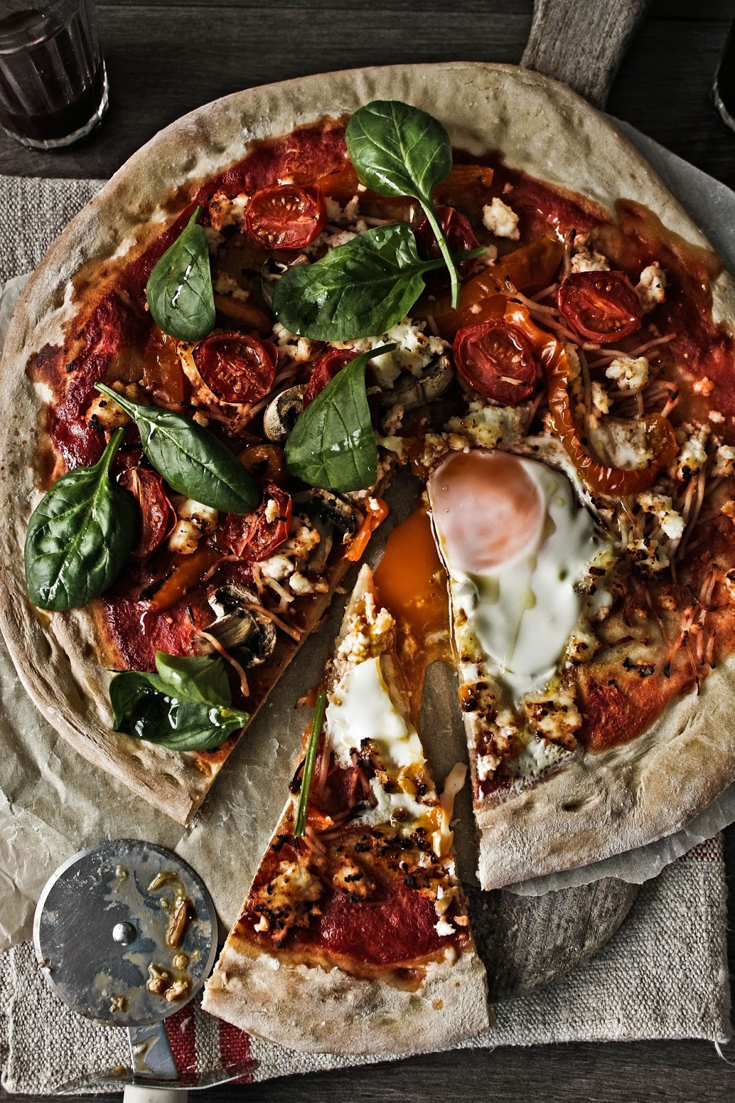 *Serve the pizzas with a drizzle of olive oil and some spinach leaves on top.