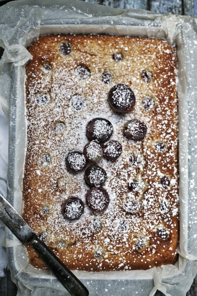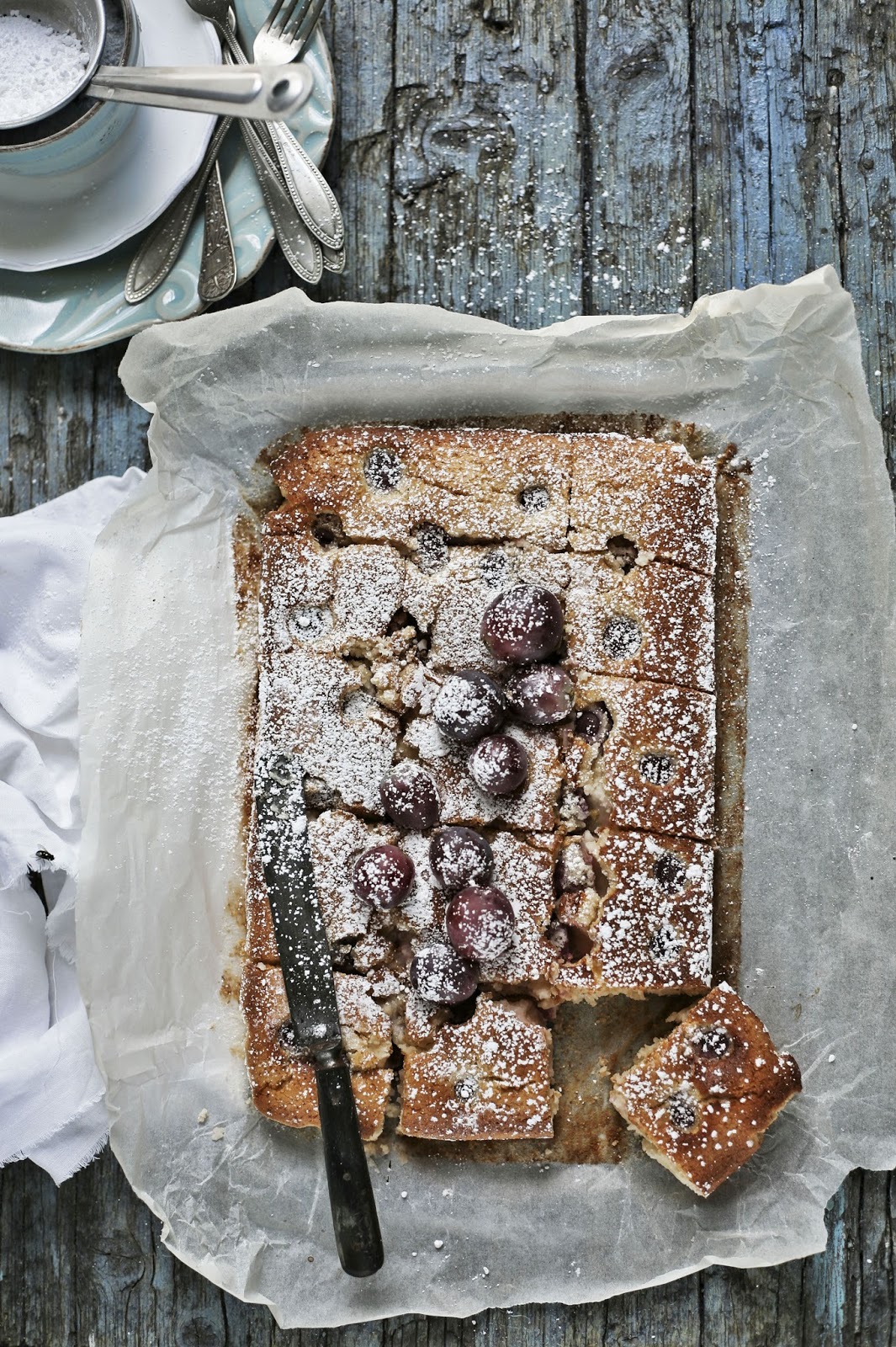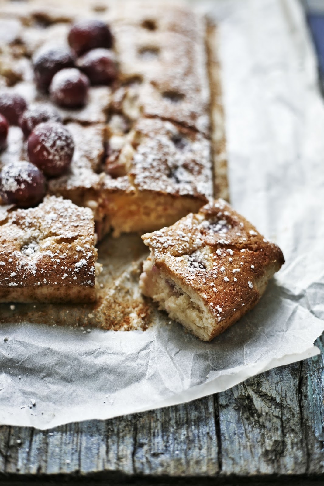 *Pour the batter into the prepared tray, scatter the grapes on top and bake for about 35 minutes, or until a skewer inserted in the middle comes out clean.