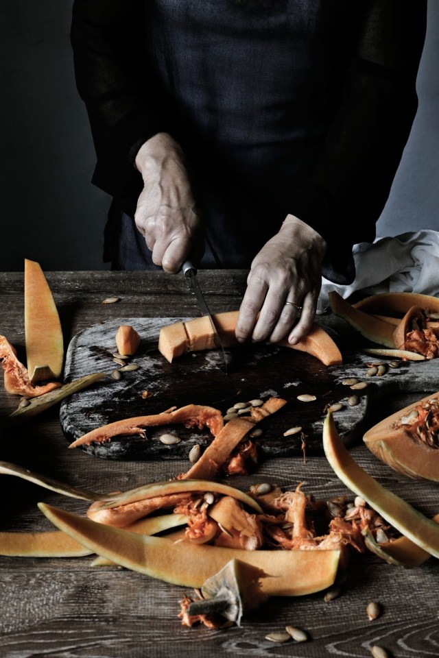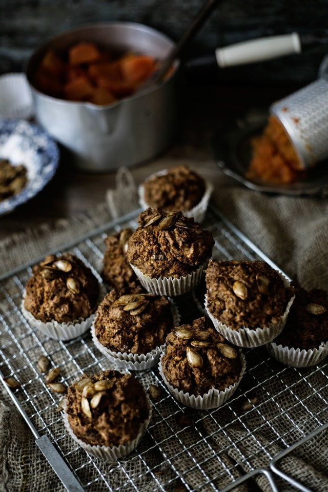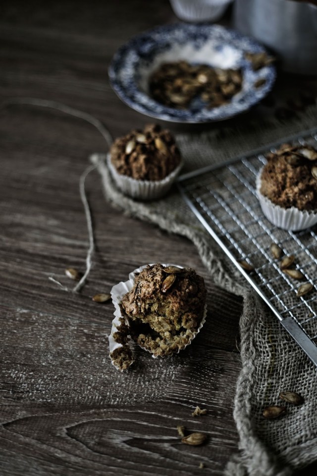 In recent times the same story, over and over again, by Friday I´m all good intentions. I make mental lists of all the goodies I want for the weekend brunch, I say mental because I have enough of the written ones all week long. But in the meantime life impose on oneself. The boys that already have their own lives prefer other rituals where pancakes, muffins and the like don´t fit, especially in the middle of a Sunday that they want well spent with their friends. I, that cook all week for work and family, many times by Saturday I start having these tempting thoughts about closing the kitchen and throwing away the key. And in the midst of these and other “meanwhiles” the will to do it fades away. But this time the call of Autumn was stronger. It only took one pumpkin, with soft, orange pulp. Pure coziness in the shape of sweet filaments that turned into savory muffins, rich and nourishing, with that nutty, delicious aftertaste so characteristic of some whole flours.