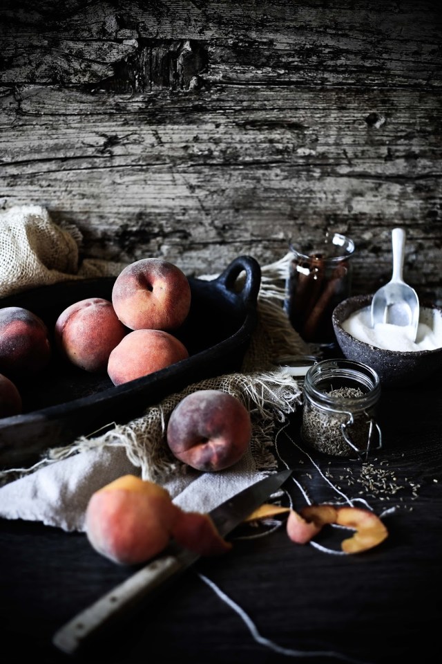 By now the last peaches are being harvested. Ripe and firm. Perfect for a jam imbued with cinnamon and ground fennel seeds. The same fennel I saw in so many of the places I´ve been. The same, whose perfume exhaled by the sun, alongside peach trees tumbled by the weight of so many fruits, made me crave and create this jam.