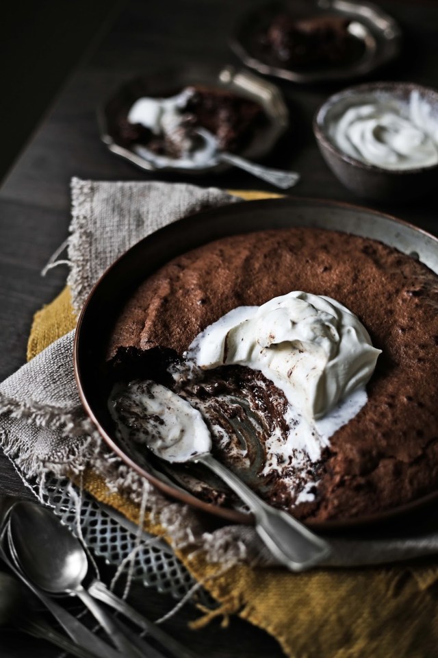In the meanwhile, last 25th February this blog, also known as Pratos e Travessas completed 8 Springs… and also Summers, Autumns and Winters. The full package, so that no one should feel excluded. I think we are still in time to celebrate, don´t you think? Even if with a simple, moist chocolate cake, a gooey, decadent one, in which one can put one´s spoon happily, unceremoniously but with much appetite, something we have no lack of around here, and I hope that out there you don´t have either.