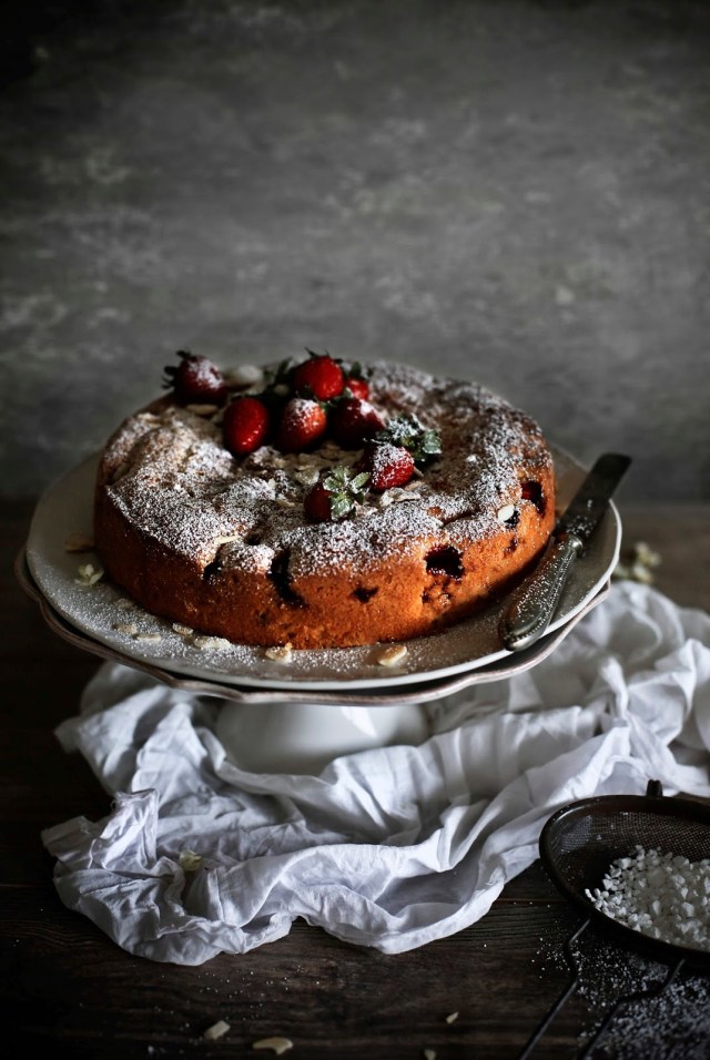 *You can decorate the cake with fresh strawberries and sliced almonds.