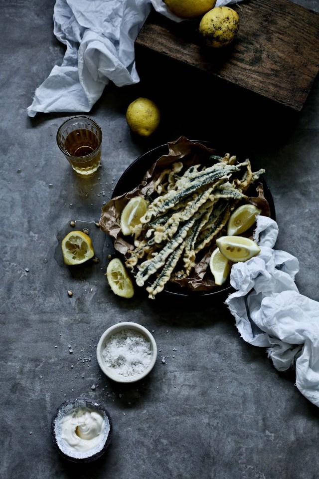 Using cold water and eggs will make the peixinhos da horta (fish from the kitchen garden) extra crispy an delicious once they are fried. - *Mix the flour with the water little by little so the batter stays smooths with no lumps.