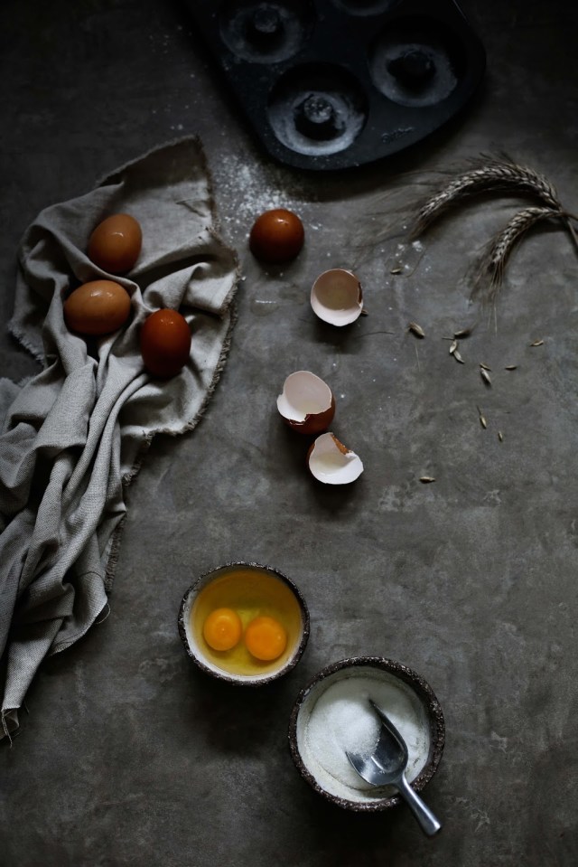 *Unte uma forma de 6 donuts (ou duas, se o seu forno for convetor), ou 12 forminhas de savarin com manteiga e reserve.