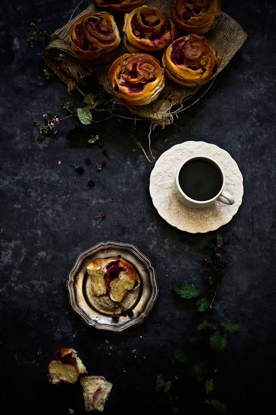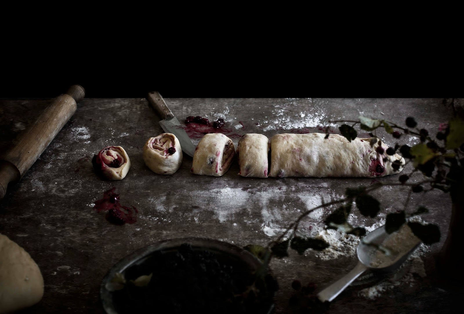 I love pastries filled with fruit. It´s one of those things I´m never tired of, leavened or crust, brioches or pies, keep them coming and they are never too much. And then there´s all that leisurely warmth of the hands plunged into the soft dough. The coming and going that pushes and pulls back and makes it soft and elastic. And the almost endless variations of fillings. This time I chose the freshly picked blackberries and white chocolate shaves. Fruity acid and sharp sweetness, in a deliciously soft brioche dough. Too good!