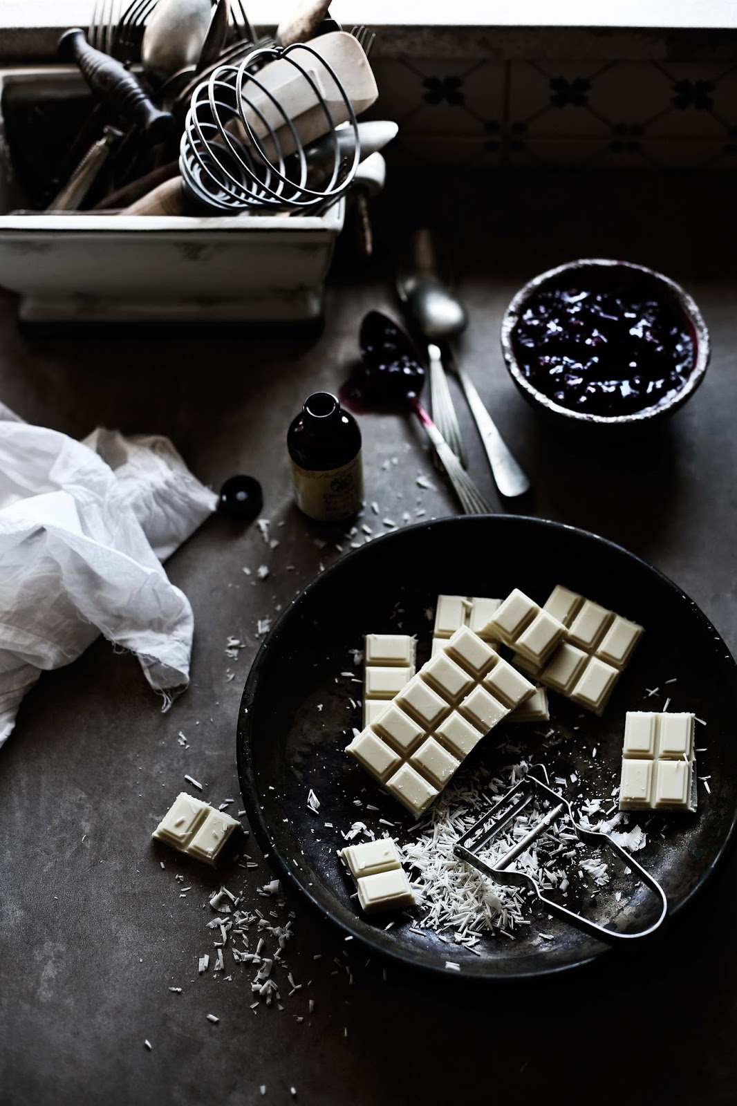 *Por cima do creme de amoras espalhe as raspas de chocolate branco.