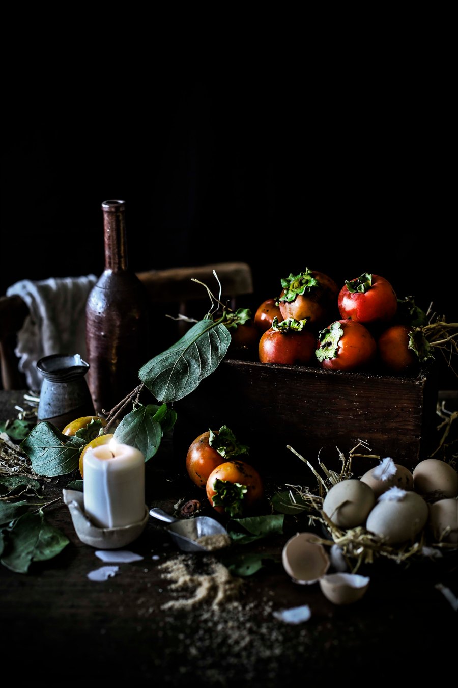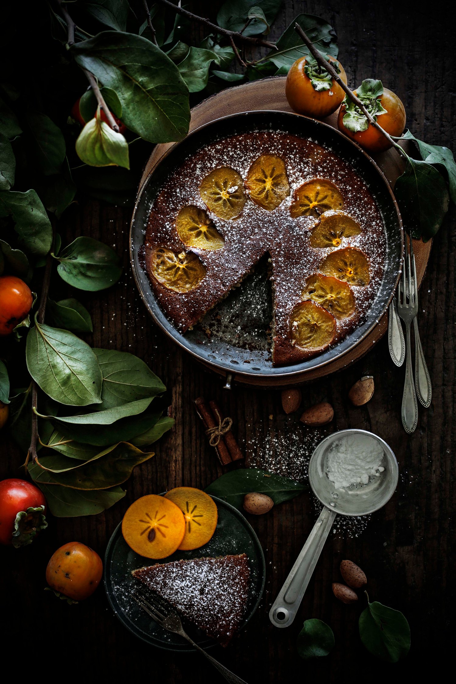 - Pour the batter into the skillet, place the persimmon rounds all over the top and bake for 20 minutes, until puffed and beautifully browned.