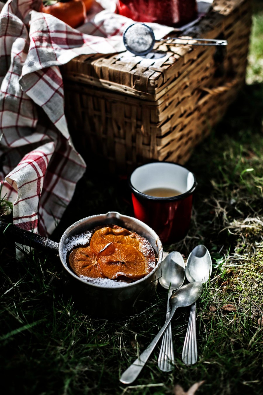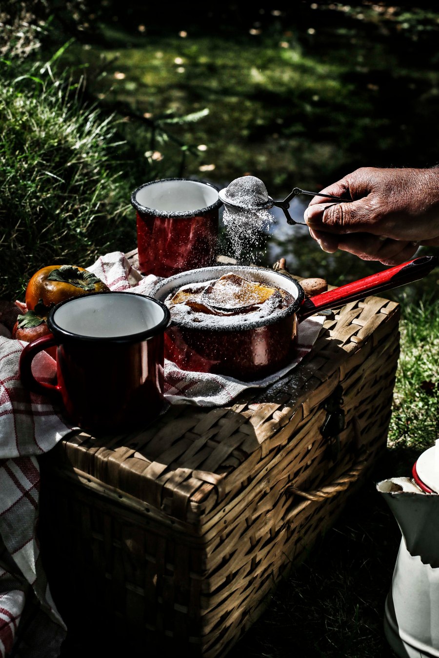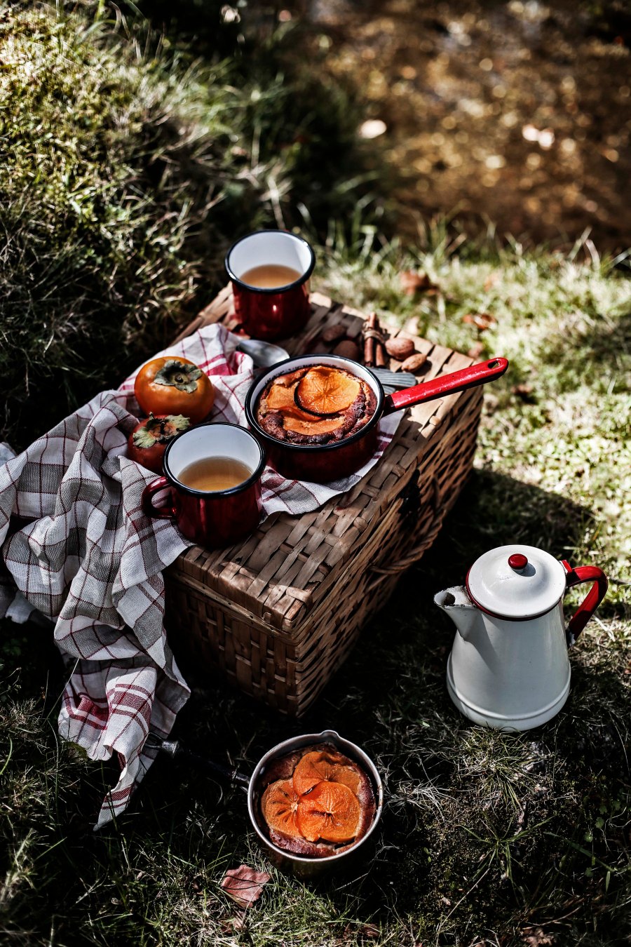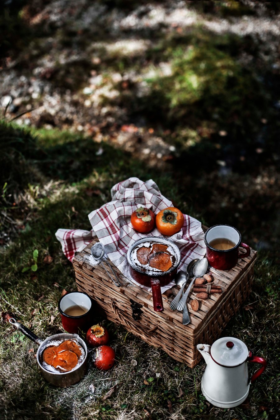 In the basket were a few fluffy, autumnal persimmon, almonds and cinnamon flaugnardes, a chamomile tea and a well-kept will to stay and stay. And between sweet, soft spoons and lazy sips of warm tea the afternoon passed. We parted again with a “See you soon” and took the same deserted roads, gradually leaving the hills behind, to bring us back into “civilization.”