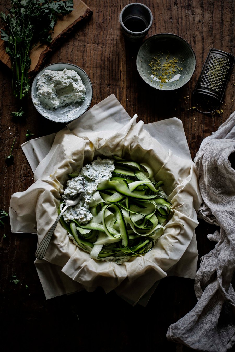 - Mix ricotta with lemon zest and parsley. Season with salt and black pepper to taste. Reserve.