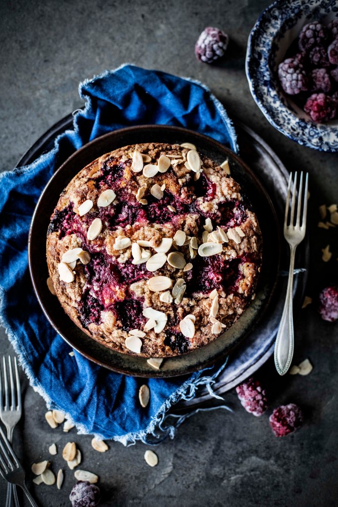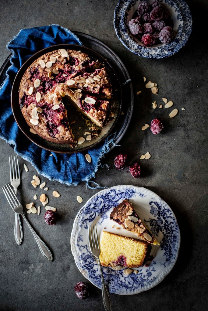 - Pour the batter into the prepared cake tin, smooth it with a spoon and scatter the raspberries on top, cover with the streusel and bake for 35 minutes or until a toothpick inserted in the middle comes out almost clean. A few tiny crumbs are normal because this is a buttery cake.