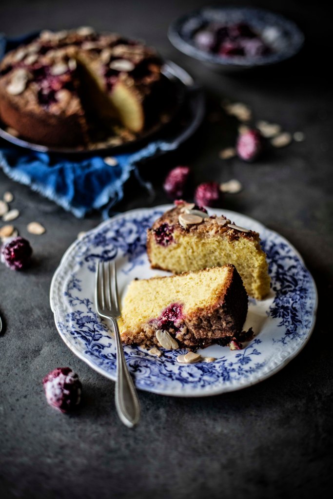 I don’t usually categorize cakes or sweets in general as comfort food, which for me is mosttly a savory affair, yet there is an exception, this chickpea flour cake with raspberry and almond streusel. The base remains the same year after year. The combined softness of chickpea flour and butter, the taste of vanilla, but it’s in the streusel that I vary: With or without nuts, assorted fresh fruits, herbs and spices. And it’s this generosity of flavor, this adaptability makes it perfect for every day and for every mood.